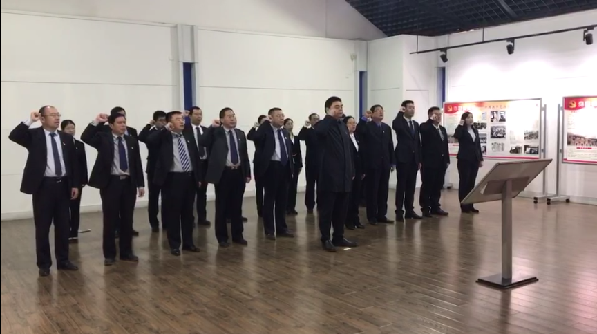 &bsp &bsp &bsp &bsp 陈列馆内悬挂着巨幅中国共产党党旗。面对党旗,公司党委班子成员、党支部书记及2017年新发展的预备党员重温入党誓词。在刘岩领誓下,铿锵有力的宣誓声响彻大厅,让现场所有人都深受感染。宣誓仪式上,刘岩同志代表公司党委对新发展的预备党员表示了衷心地祝贺,并强调,今天我们来到这里学习回顾党的历史、重温入党誓词,就是要更好地不忘初心、牢记使命,牢记习近平总书记的谆谆教诲,以习近平新时代中国特色社会主义思想武装头脑,指导实践,坚决把习近平新时代中国特色社会主义思想落实到各项具体工作中,时刻以一名共产党员标准严格要求自己,发挥党员先锋模范作用,努力做好各项工作,为实现中华民族伟大复兴的中国梦而努力奋斗。