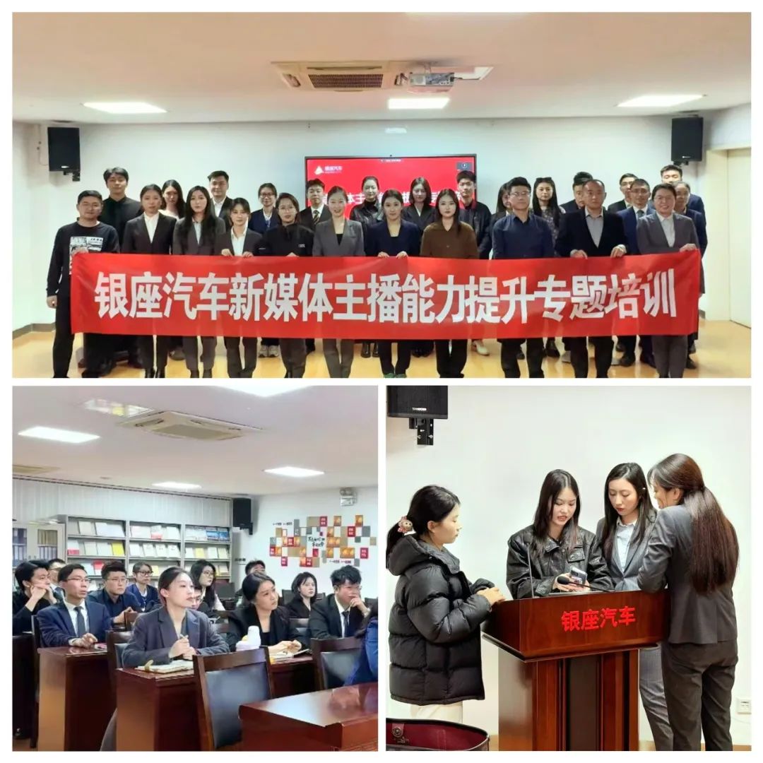 资深专业讲师从汽车主播直播技巧到直播脚本创作实操,从抖音底层推流逻辑到直播运营复盘技巧,为学员们带来了一场理论与实操相结合的知识盛宴。账号陪跑以及直播后的现场复盘指导,让学员们深刻了解到复盘的技巧以及重要性。此次培训不仅提升了银座汽车新媒体主播们的专业技能,更拓宽了思维视野,为今后的新媒体直播实践打下了坚实基础。