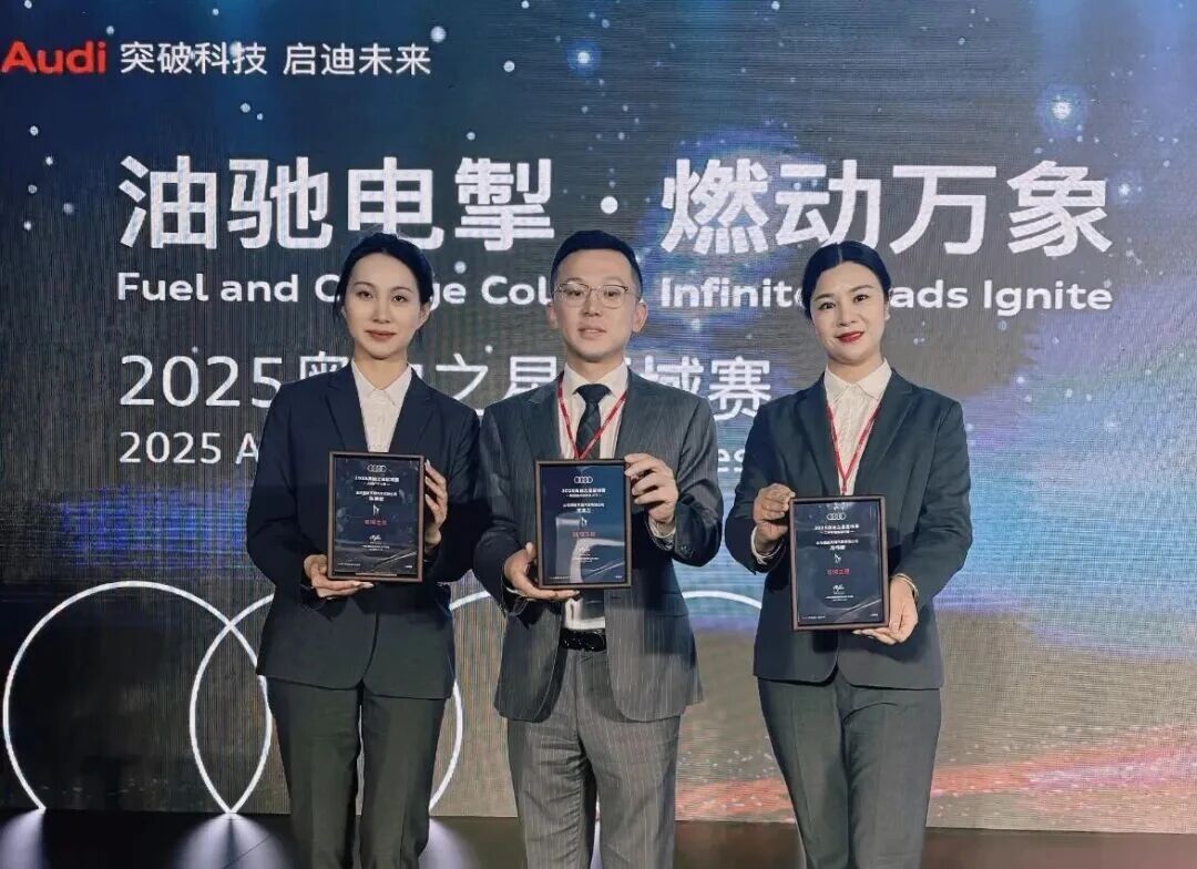 近日,以“油驰电掣·燃动万象”为主题的2025奥迪之星区域赛在成都圆满收官。在这场汇聚奥迪精英的巅峰对决中,银座汽车天尊奥迪团队大用户负责人朱澳雪、销售顾问王星之、二手车销售顾问冯伟娜凭借过硬的综合实力与出色的现场表现,再获佳绩,用实力铸就荣耀!